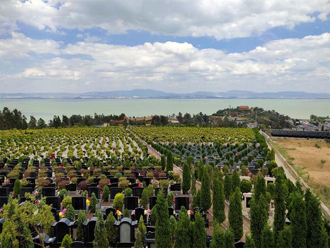 整个墓区坐西朝东,背靠西山,面朝滇池,成椅子型,符合传统殡葬理念,按照其现有地理特点,依照自然地势分为福泽园、福德园、福寿园三个大区域。