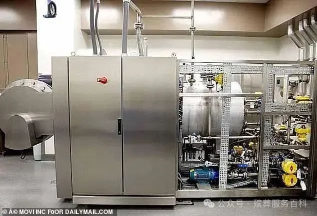 (图为“碱性水解”殡葬方式所使用的专业设备。)