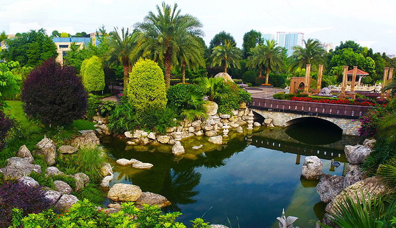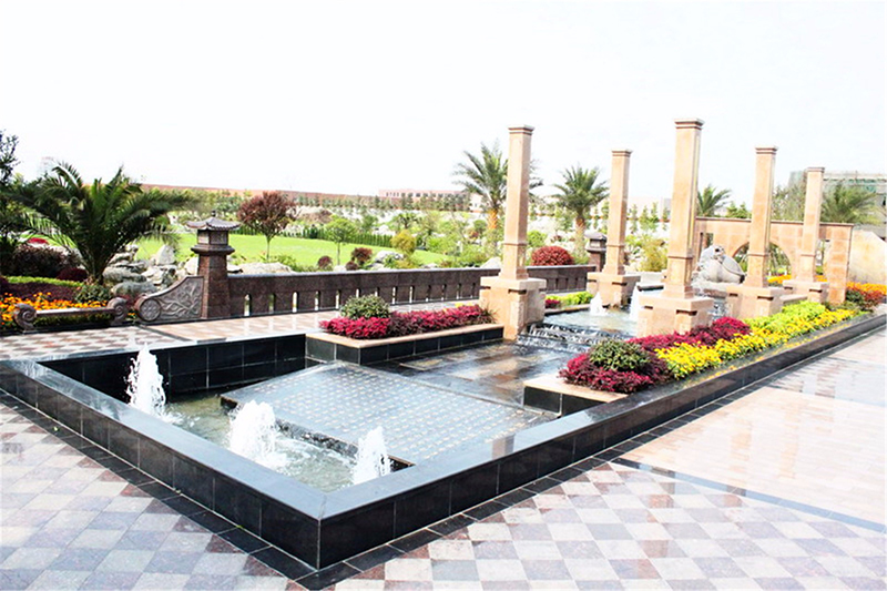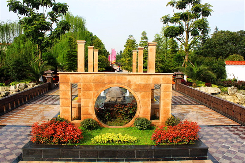 星星点点的文化小景则四处点缀于园林景观之中,有的欲藏还露,有的襟怀开张,情态各异,不一而足。一抹流芳溪更是串联起了众多景观,前有万寿广场、万福广场、万安广场鳞次栉比,后有千禧湖、千思湖、千秋湖、千姿湖、千丽湖、千恩湖星罗棋布,其余小景兼以及文化石上篆刻当代书画大家来园观览后的挥毫题留,或古人警世贤言及喻景怀故之语。小景虽多,但却皆有一共同之处,使大小景观更加鲜活起来。