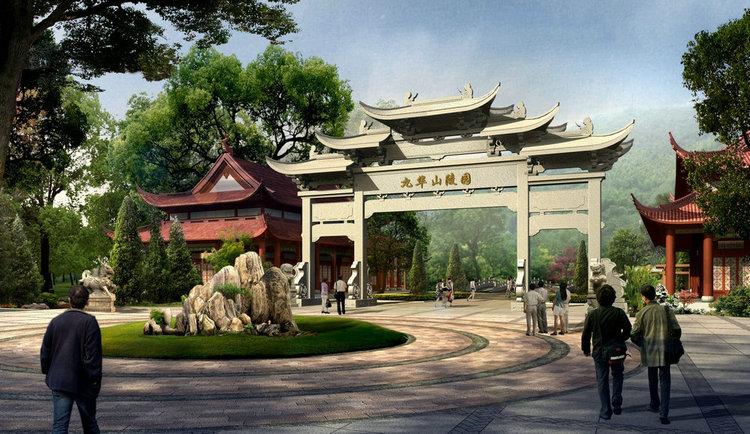九华山陵园距九华山主景区六公里,规划占地508亩,投资4亿元,自2007年7月份成立以来,一直坚持以文明殡葬为主题,走特色景区路线、打造一流的生态陵园为目标来发展陵园。现已开发的福位产品有金刚宝座塔、六和塔两座节地型室内存放式建筑,另有系列特色产品罗汉塔、文化墓、寅苑等等。陵园在产品的开发过程中,依据自身独特的山水文化,特邀杭州规划设计院将福位产品的设计与自然融为一体,所有室外产品均掩映于山水之中,目前绿色面积占整个园区的70%,使园内到处都充满生机勃勃的绿色,使得九华山公墓陵园成为国内一流的生态陵园。