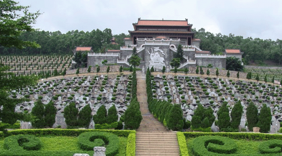 飞鹅公墓园位于顺德著名山岭---飞鹅岭的腹部,附近龟、蛇大小纱帽、横枝等山岗相映相成,备得子孙环抱之胜,岭后大门窖和岭前护陵河形成前持后关锁,而中气不泄、很切合堪与学中风水的标准,正是藏风聚气之所,是先人入土为安、叶落归根的理想安息地。