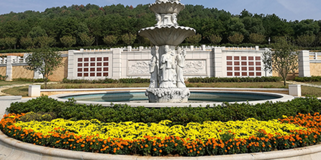 九峰花园总规划还聘请国内外建筑和社会学、文史艺术专家学者对九峰花园进行全方位,高品质的总体规划设计,是以九峰山象鼻峰优美的自然环境为依托,以园区绿色环保为主线,以文化、艺术、雕塑及公园环境为依托,充分凸显九峰花园个性与特色,并参考国外陵园及欧式园林建筑风格,在充分展示出九峰花园青山绿水、群山怀抱、回归自然的特点。九峰花园整体规划布局:公园在前,陵园在后,二园合一,九峰花园中心广场是园区标志性景观之一,广场布置庄严肃穆,蕴含哲理,园区雕塑喷泉及艺术小品,让人们一踏进九峰花园有如身临公园的感觉。