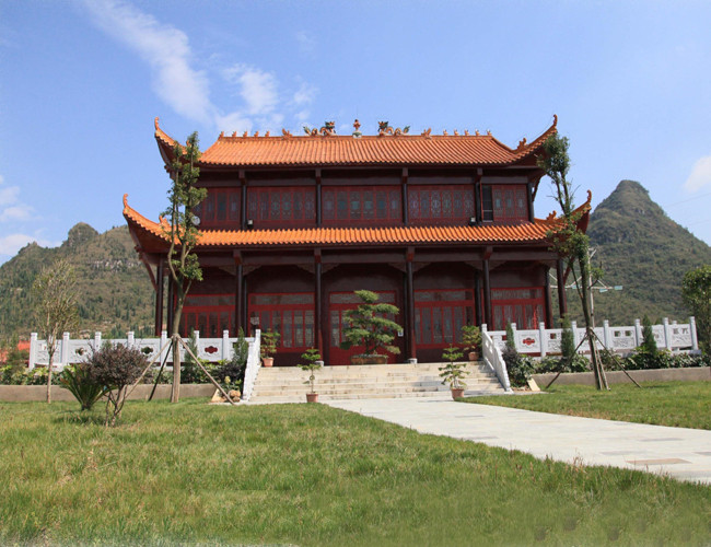 气势恢宏的陵园山门,典雅雄浑的九龙照壁,华丽端庄的古典接待大厅,禅意闲适的素斋,茶吧养生小舍,荡气回肠的回廊观景台,佛意涟漪的九龙浴佛池,庄严肃穆的炎黄祭祖台,前有青山水库,明堂宽敞,后有九龙靠山,山形厚重……这一切,都静静地伫立在青山绿水之中,符合殡葬民俗。