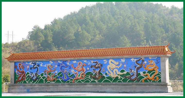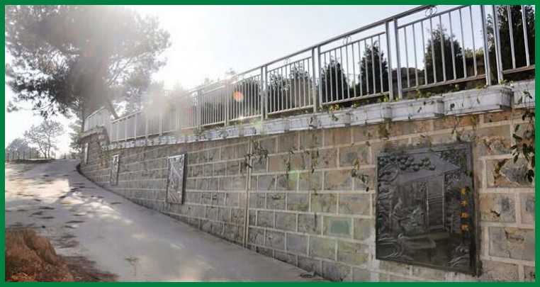 正前方山脉重峦叠嶂,遥遥可见一高两矮三座山峰,风水地势称做“童子拜观音”,山底有暗河顺势流淌,背靠巍峨高山。堪舆学指朝“童子拜观音”。寓意观音护子,子有天佑、世代平安。