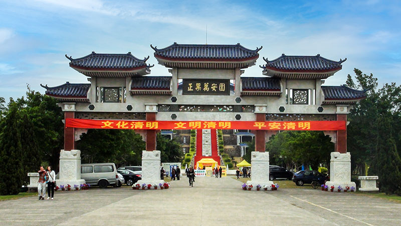 广东正果万安陵园总体布局以荷花湖为中心,运用动静平衡、阴阳调和的法则,有机地结合地理地貌,充分利用山势地形并结合亭、台、楼、阁的园林布局艺术,在建筑上以天、地、人、日、月、星辰等古代“天人合一”之精髓构思为主导,给逝者一片灵魂安息的青山绿水,也给家属一个心灵缅怀的空间。创文化陵园,建陵园文化。佛教文化、孝道文化、园林艺术与风水文化相结合是极富地域特色的万安陵园文化。