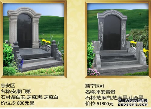 特别提示:本站所有标注价格及相关信息均来源网络采集(非墓园产品单位在本平台报价及信息提供者),无法保障其准确真实有效,随时间都会有变动,未能及时更新和核实,实际价格以墓园单位报价为准,如有异议,产品单位和平台概不负责,敬请见谅,如有不妥请来电告知,予以改正或删除相关信息。谢谢!