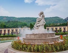 逶迤起伏的邙山,三面怀抱仙境苑,气势磅礴,山下金水河水长流不息,绕流仙境苑,有“玉带缠绕”吉祥征兆。仙境苑的自然景观形成“左青龙,右白虎”、“前有照,后有靠”之地,是海内外一流风水大师公认的风水宝地。北侧金水河特大高架桥,横贯东西,气通万里。仙境苑山上的大佛面东背西,神态庄严,栩栩如生。俯视园区,佛光普照,超度众生,越发增添仙境苑神圣、绮丽的风姿。来到这人生后花园,又如进入人间仙境、世外桃源,到处绿树成荫,花草繁茂,松柏青翠,鸟语花香,景象万千。