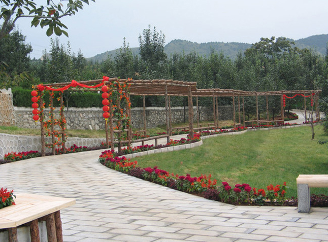 元宝山庄虽是陵园,不似陵园,宛若一座绚丽多彩的花园。当人们置身这座集民俗建筑 、园林艺术、人文景观、旅游休闲为一体的生命纪念公园里,会看到百年栗子王树向现代人 道贺着吉祥与和美,百亩柿子林为人们传递着事事如意的期盼与祝福,珍禽动物园演绎着人 与自然的和谐与亲近。这里三季有果、四季常青、百鸟栖息、移步换景,似人间仙境。
