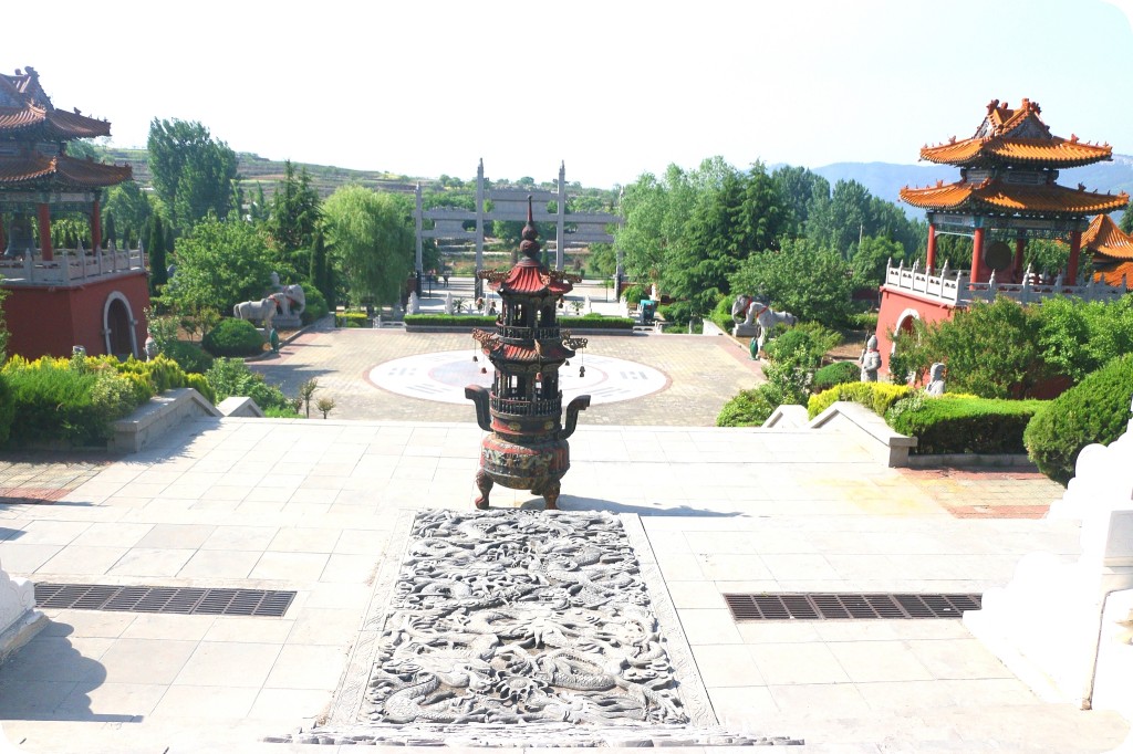 卓山景观陵园就坐落在宏伟大殿后的后庭院,在生态园林化的茂密郁葱之中,掩映着一座人文纪念公园-----枣庄
