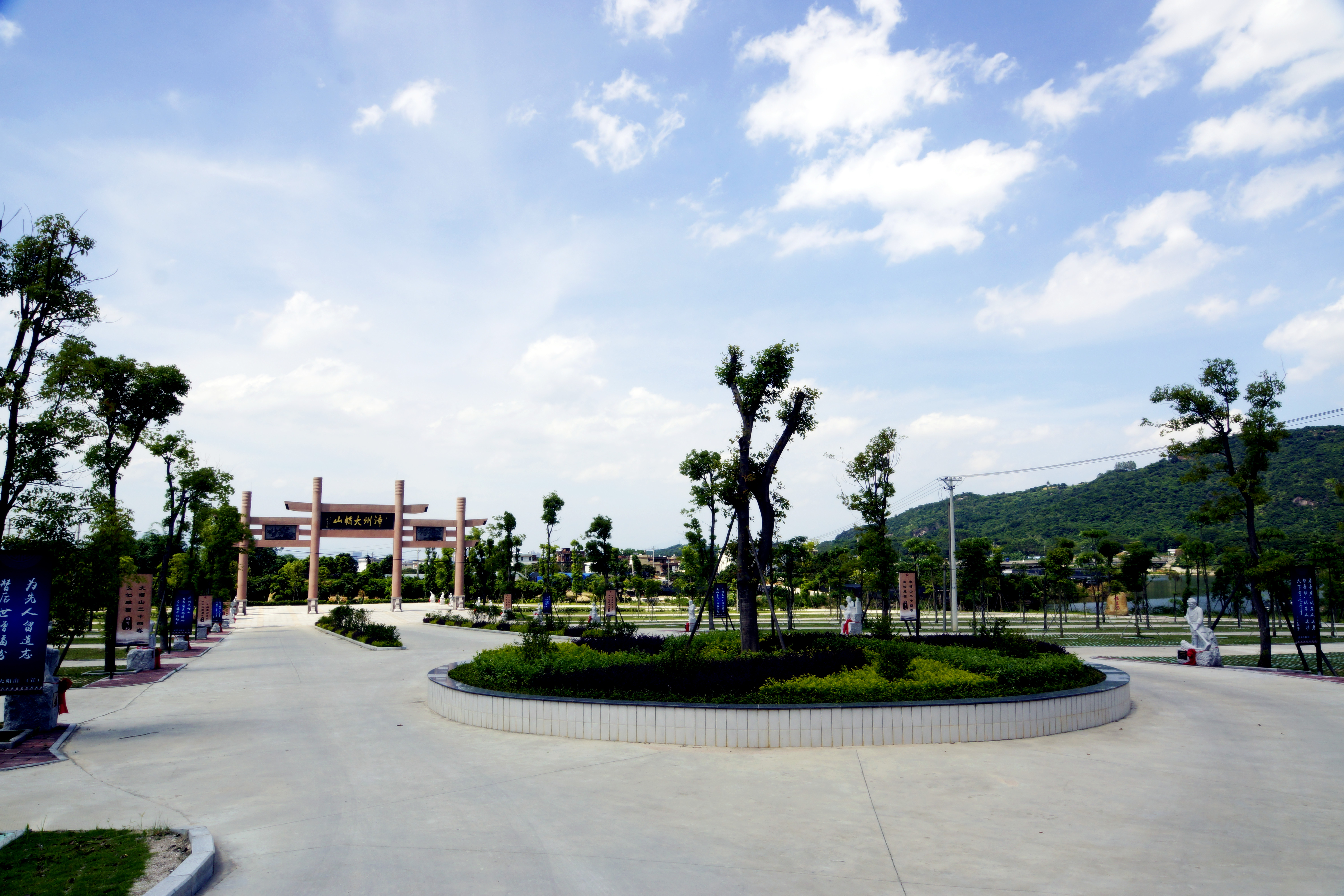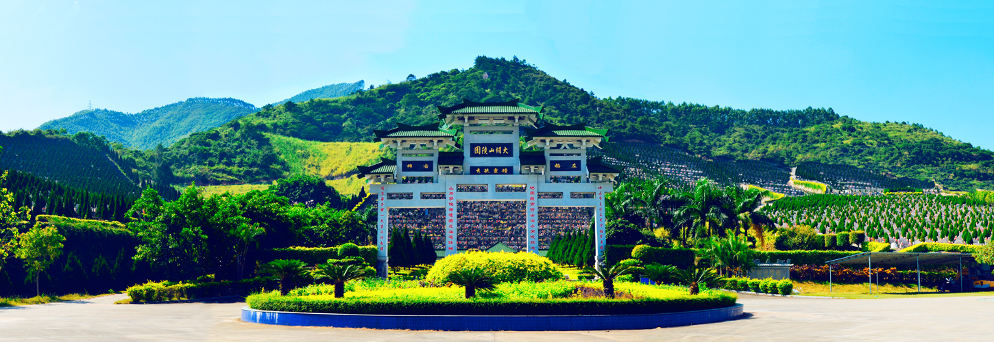 大帽山陵园地处此山主干山脉南麓,此处全年好景,煦日和融,每见叶绿花红;四季韶光,惠风清畅,时闻虫鸣鸟语。陵园布局呈南北走向,汉唐风格,景观别致,环境优雅,实乃荫丁旺财催贵之宝地。德高望重的南海道生长老对此予以高度评价,亲笔题写:“得山水清气,极天地大观”。