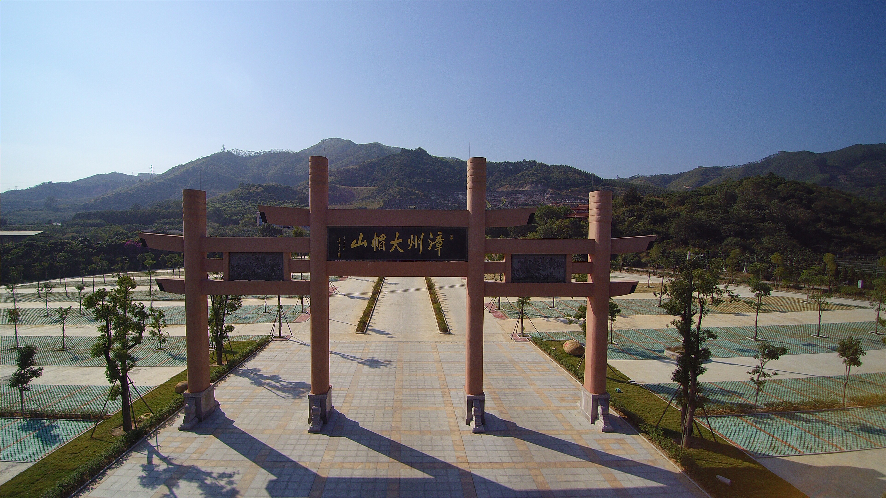 大帽山公墓陵园以雄伟的大帽山做峦头,有藏龙卧虎之形,腾蛟飞凤之势。青龙盘守,白虎曲伏,山砂护卫有情;屹立于生方的圆山,奔腾于水口的日照岩,状如左旗右鼓;玄武山体态庄严,形如菩萨打坐,南海戒忍方丈惊叹:“此乃造化神奇,世所罕见”;前方朱雀山若隐若现,成形成体,一望无际的荔枝海,繁花似锦的漳州城,尽收眼底。