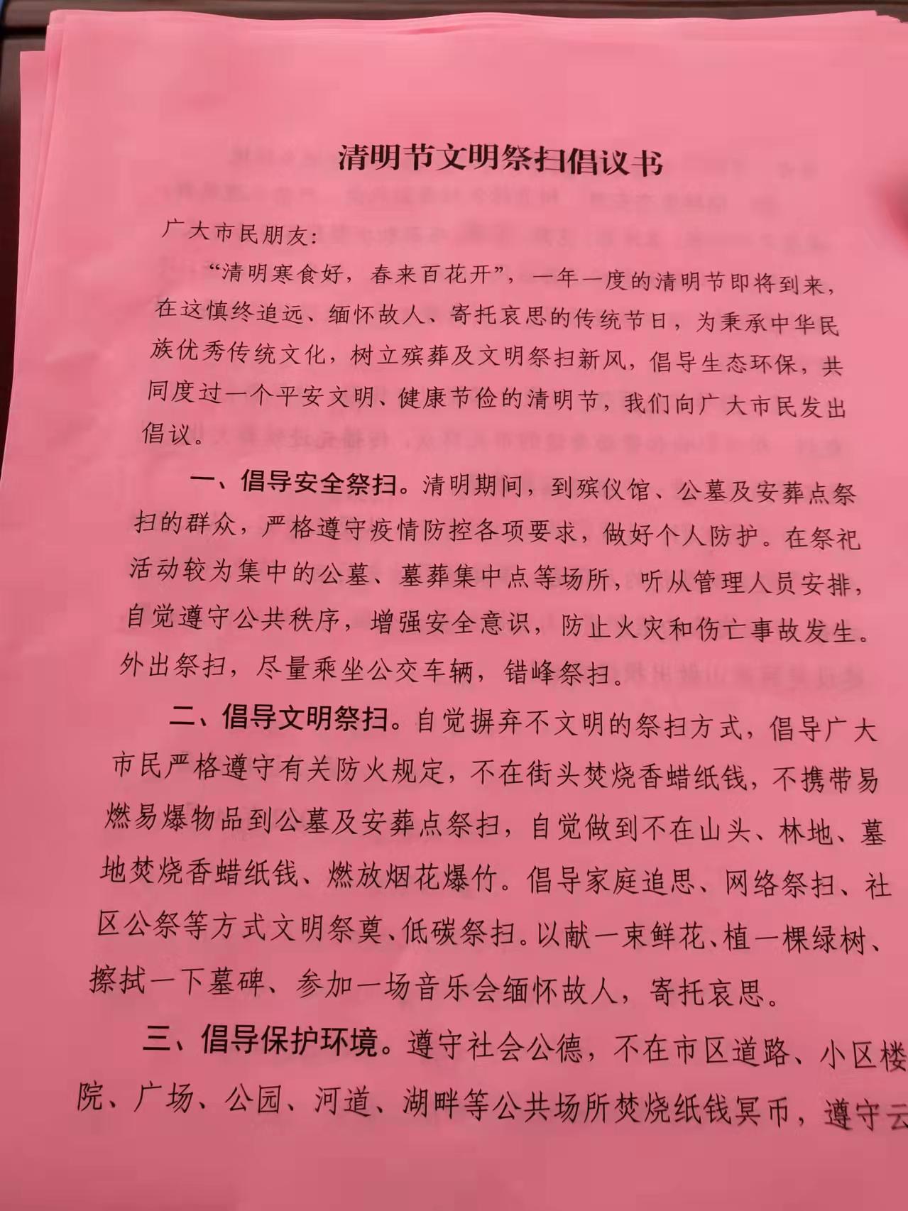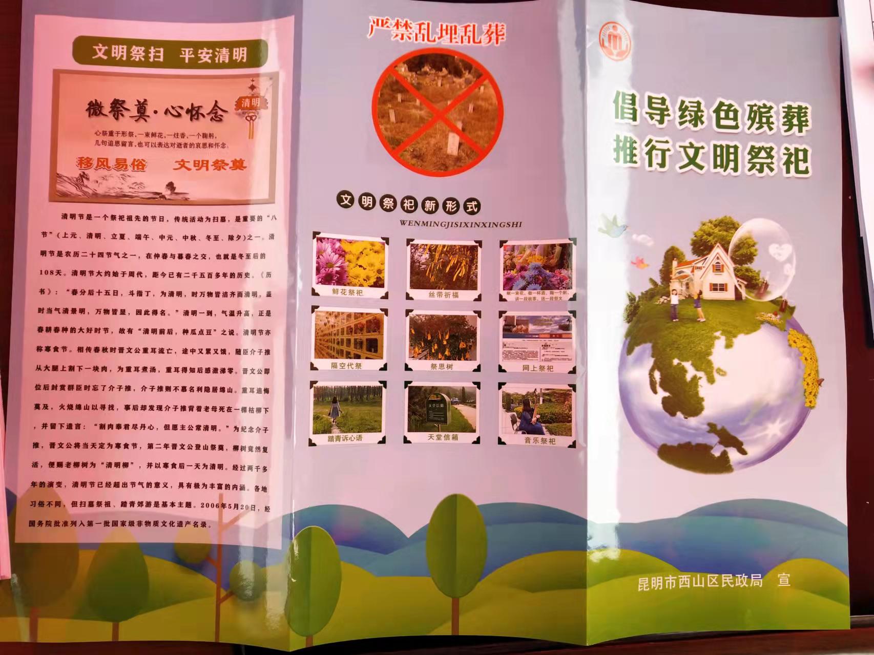 又是一年清明时节,为做好殡葬改革宣传工作,促进文明祭扫和平安清明目标实现,针对2022年清明节,西山区殡葬改革联席会议办公室印发了《西山区2022年殡葬法规下基层活动方案》《西山区2022年清明节期间疫情防控文明祭扫安全保障工作方案》,对西山区2022年殡葬法规下基层活动,及2022年清明节期间疫情防控文明祭扫安全保障相关工作进行了具体安排。